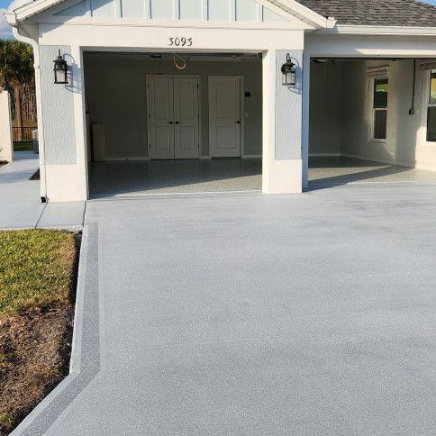Sick of parking on a dirt or gravel driveway? Advanced Coatings Inc. provides decorative concrete driveway solutions for homeowners in Ocala, The Villages, Clermont, Astatula, Fruitland Park, Mount Dora, Leesburg, and Clermont, FL. Whether you prefer a smooth surface, a patterned design, or a speckled look, we can bring your vision to life—and finish it with a protective clear coat for long-lasting durability.